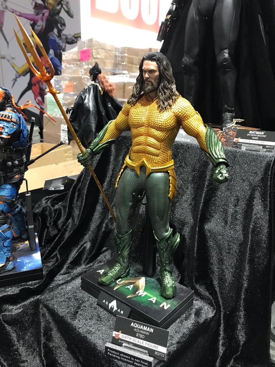 We recently learned that Aquaman will revolve around Arthur Curry and Orm racing to retrieve King Atlan's Trident and finding out who is worthy of ruling Atlantis. Well, as expected, it appears as if the Justice League member will indeed be crowned the underwater nation's one true king because some merchandise spotted on the Comic-Con floor shows the hero in his epic comic accurate costume.
