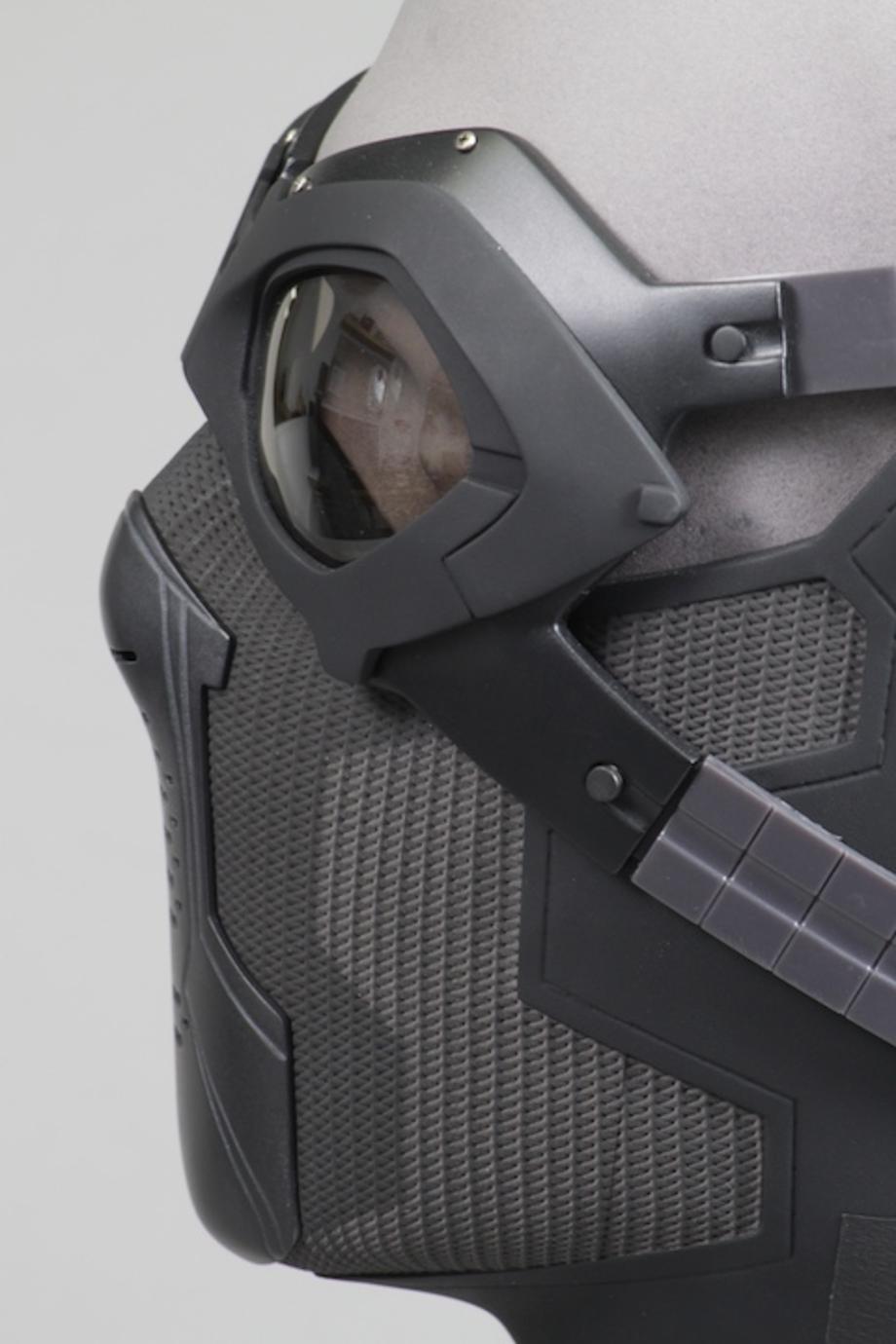 The Winter Soldier’s 2-piece mask is made of 30+ parts — but only takes seconds to get on.