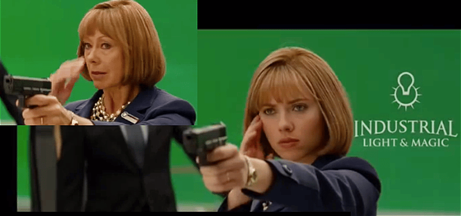 The final portion of ILM's VFX reel showcases the work their artists did on my favorite scene, which is when Natasha Romanoff, aka Black Widow (Scarlett Johansson) reveals to Alexander Pierce (Robert Redford) that she was disguising herself as Councilwoman Hawley (Jenny Agutter). I honestly didn't see that coming.