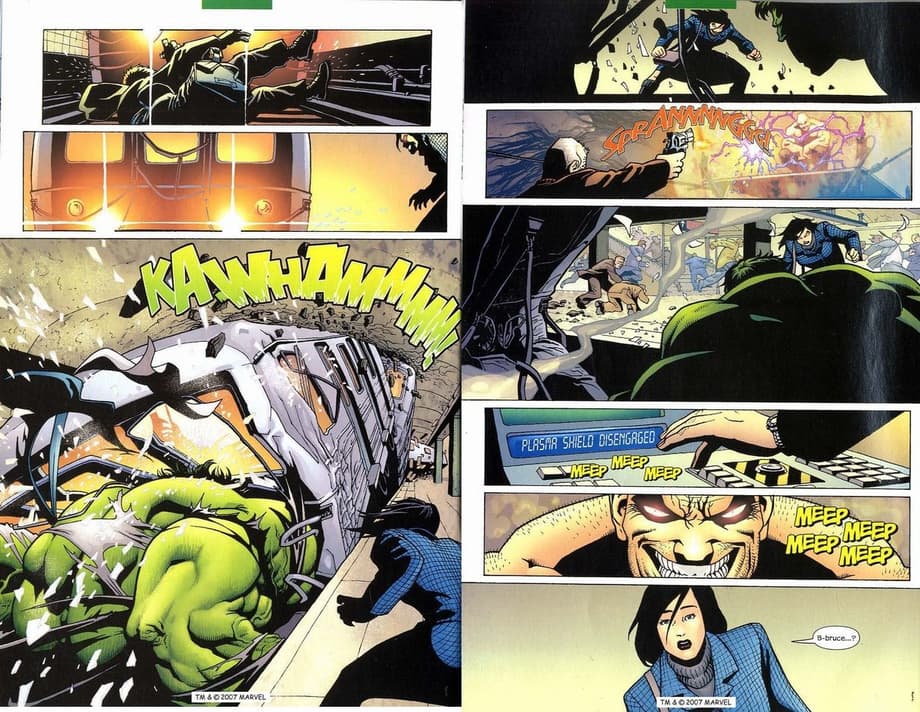 He completely no-sells a speeding subway train to the face in Incredible Hulk vol.2 #56: