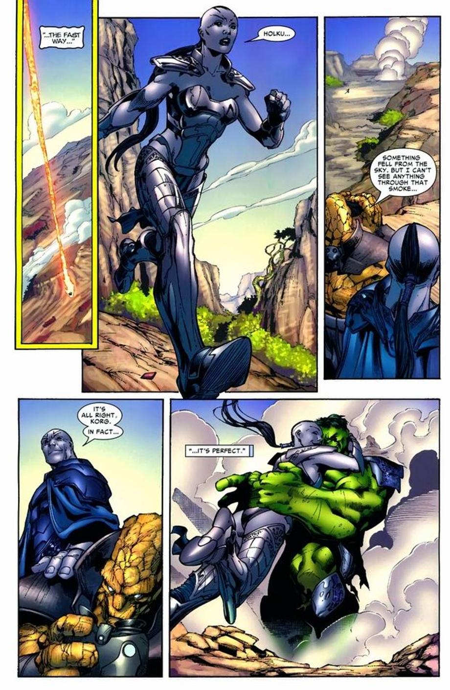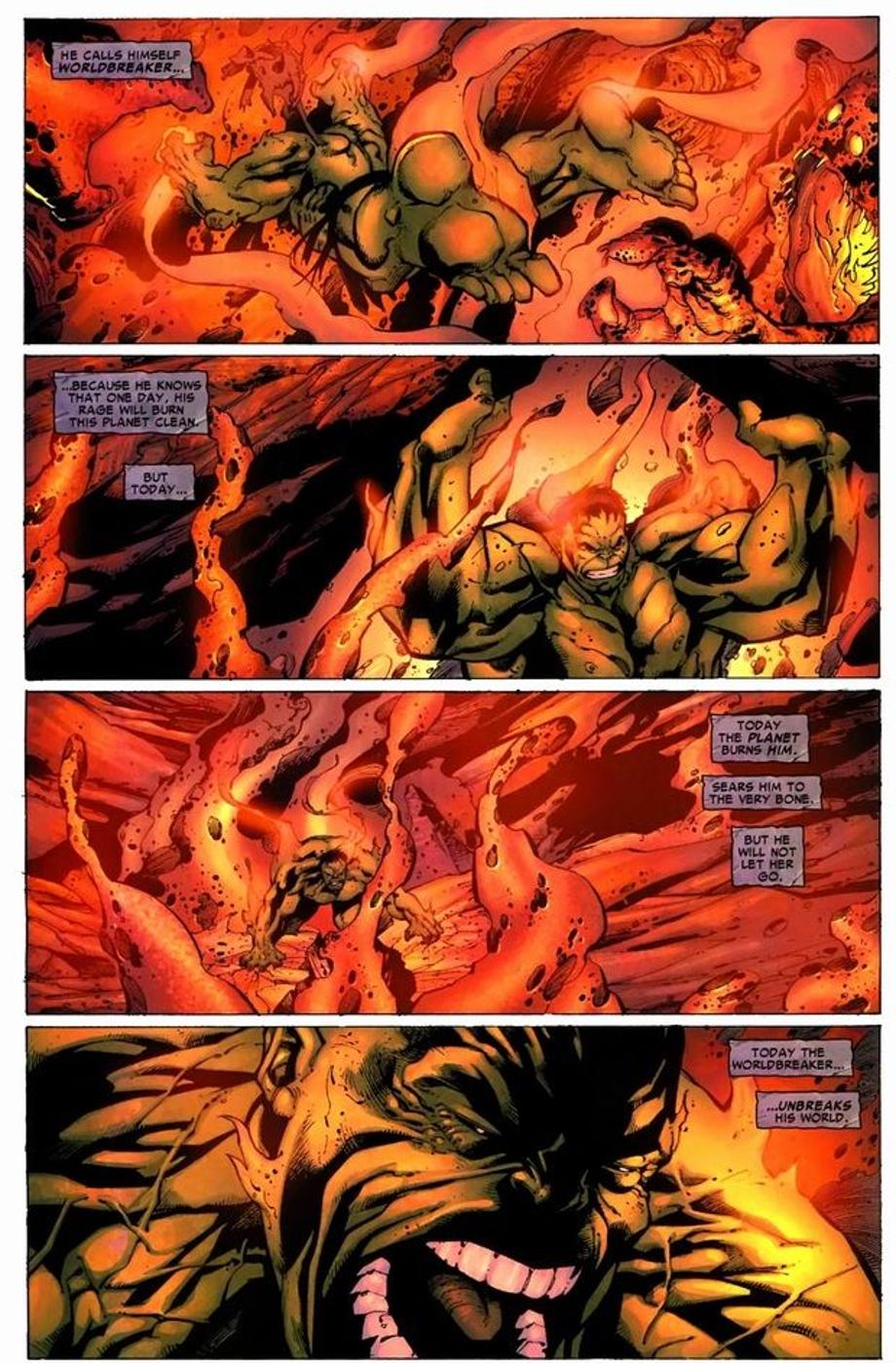 Diving towards the molten mantle of Sakaar matters little to the Hulk in Incredible Hulk vol.2 #102: