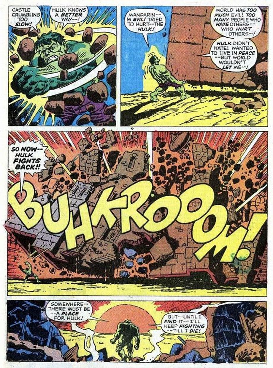 He's lifted up entire castles as they crumble and collapse on themselves in Incredible Hulk #108 and 120:
