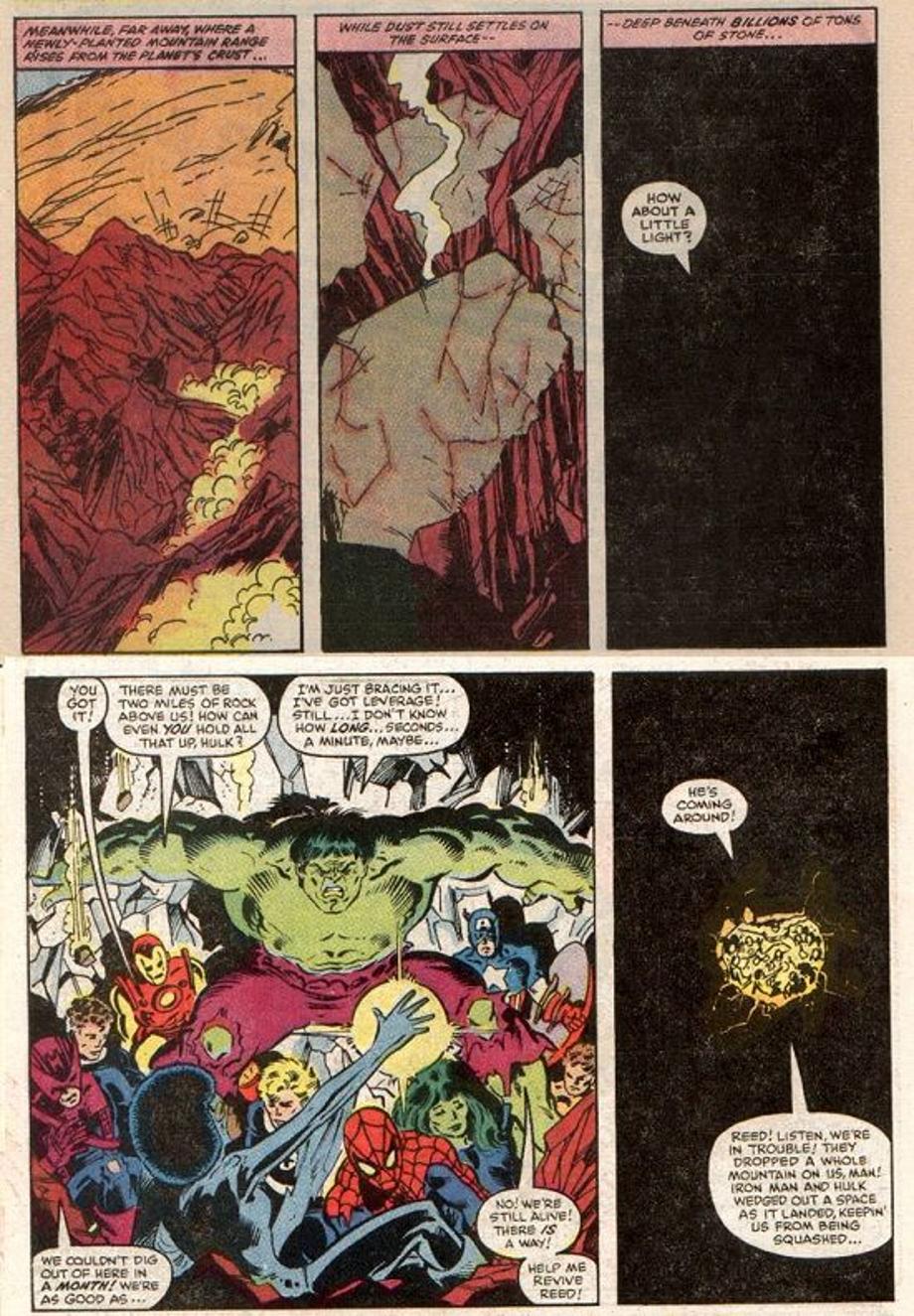 Savage Hulk can even throw the Soul Gem down through a planet's crust and mantle and deep into the very core of K'ai in Incredible Hulk #248: