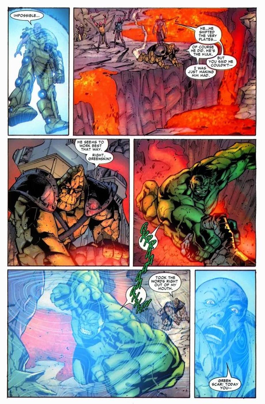 Savage Hulk's strength can be planetary in scale. As the Oldstrong Caiera explains with her deep connection to the planet, "[T]his planet talks to me. And it cannot hold -- the Red King cracked the plates." That doesn't stop Hulk from using his immense strength to hold Sakaar together and shift those plates to avert worldwide catastrophe in Incredible Hulk vol.2 #102: