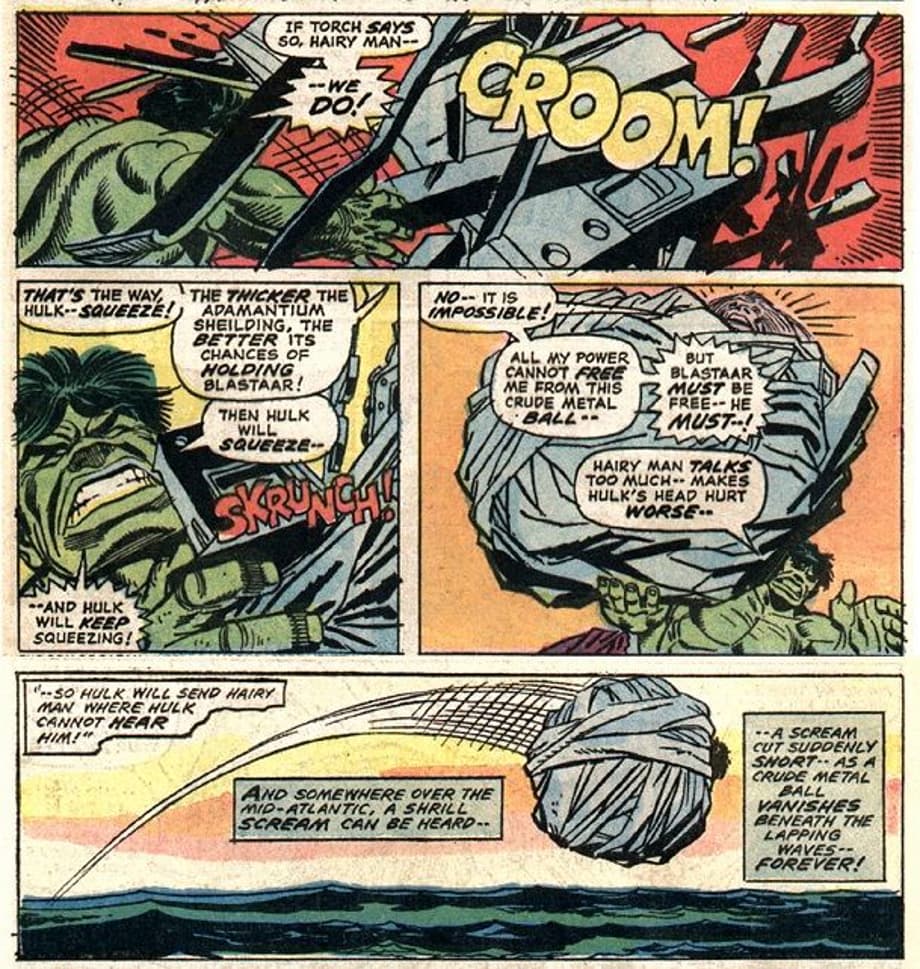 Savage Hulk has actually lifted and tossed things into outer space in Incredible Hulk #107: