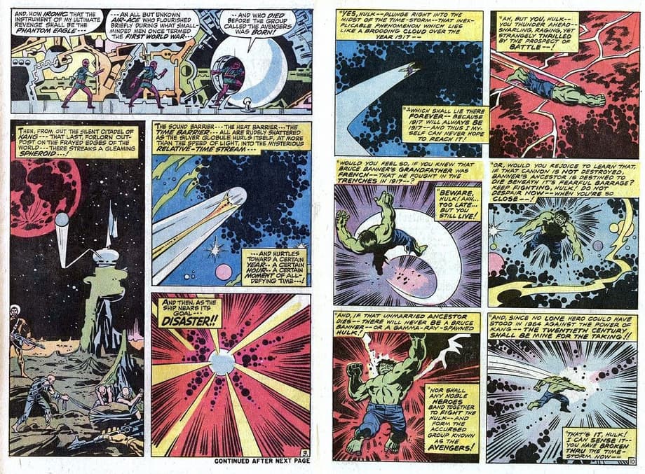 Impossibly, Savage Hulk literally punches through a time storm (one that even Kang's time machine cannot penetrate) and rends apart the space-time continuum enough for Kang to travel through in Incredible Hulk #135: