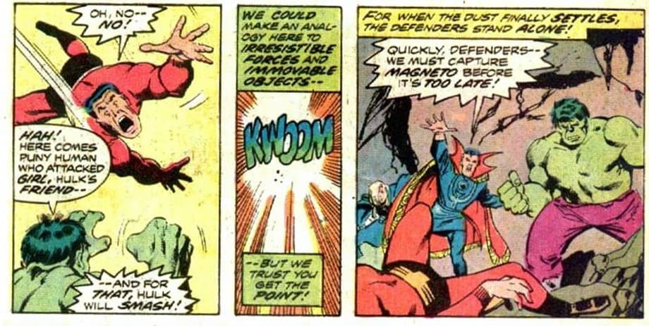 But few feats of stamina match him wrestling Thor in an epic mercy match for an entire hour in Defenders #10: