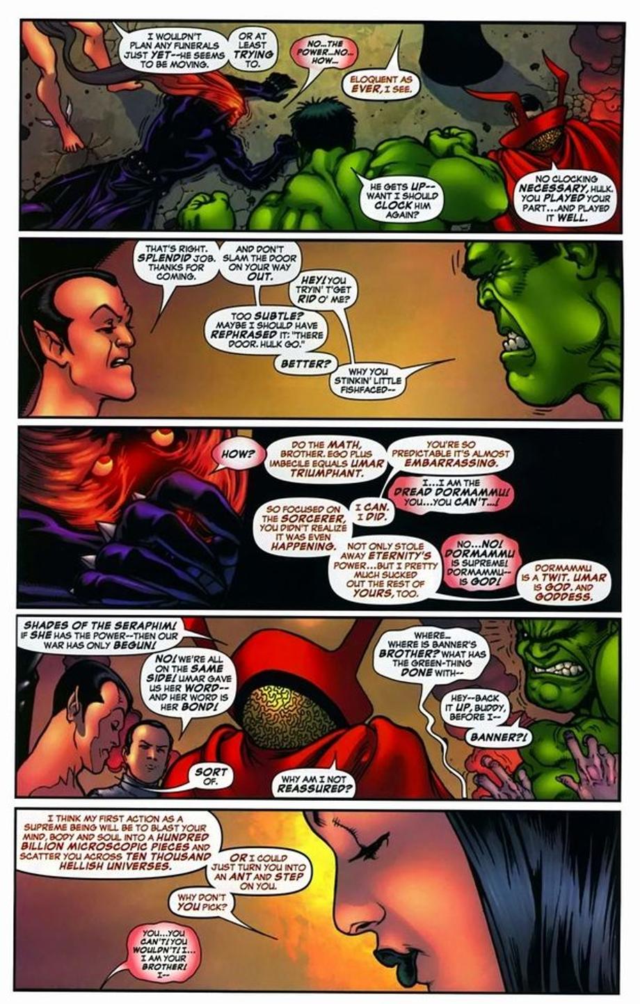 In Marvel: The End #4, the Celestial Order powered by the Heart of the Universe, one-shot Namor and Dr. Strange while Savage Hulk shrugs off those same blasts:
