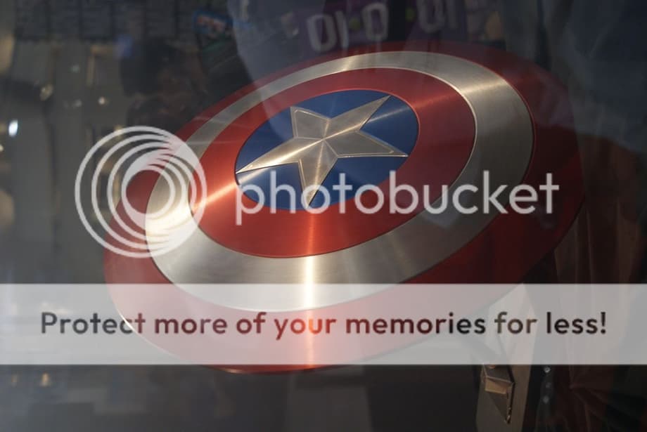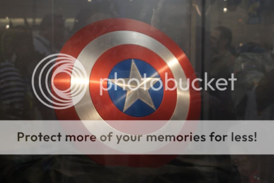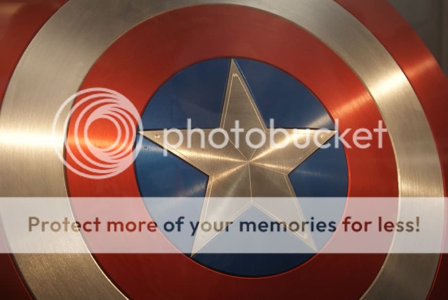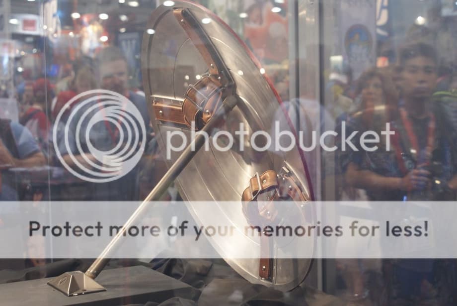 Here it is, folks! What a way to start a Sunday morning, seeing the most iconic shield in comicdom. The shield was only displayed for two hours today, but I was there first thing when it was unveiled. It is definitely machined metal, approximately 1/2 inch thick with two very heavy leather carrying straps: