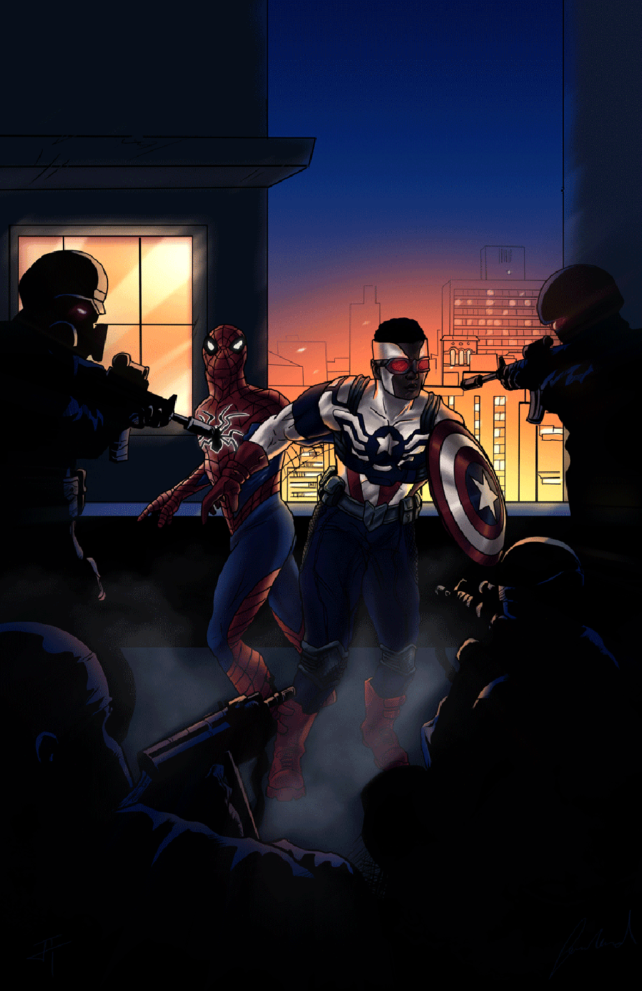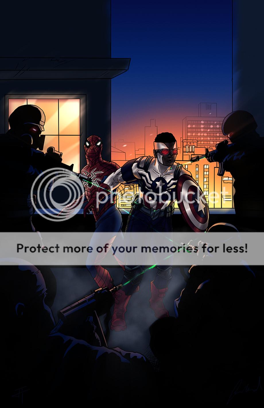 Featuring the new costumes of both Captain America and Spider-man, here they are in my newest picture.