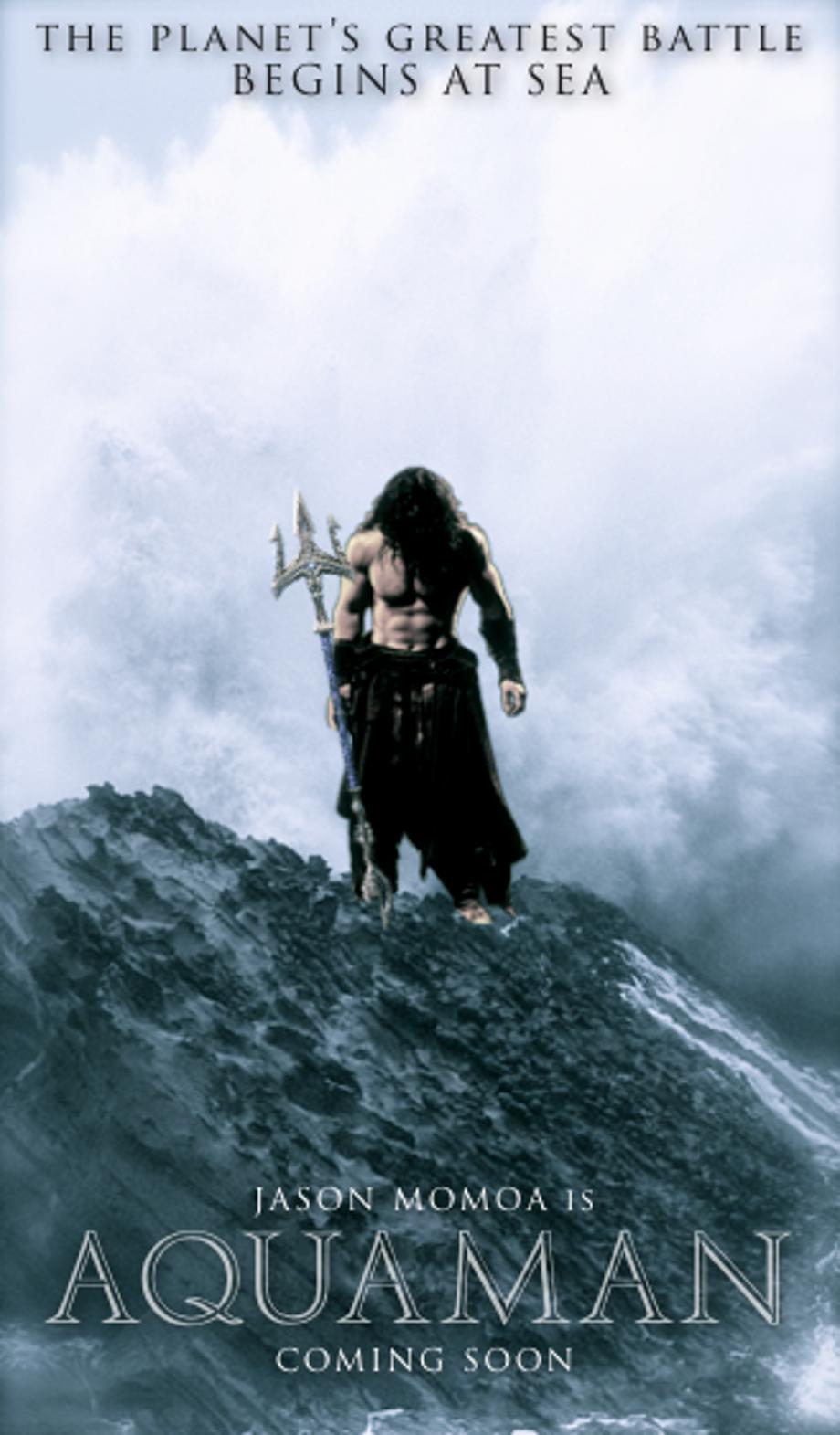 This one was a little more difficult to pull off as there are no actual picture of Momoa as Aquaman thus I couldn't really add the classic costume (I only use iPhoto and Pages, not Photoshop). But basically went with the Conan stance on a crashing waves backdrop. Also added the trident, text, and played around with the colours.