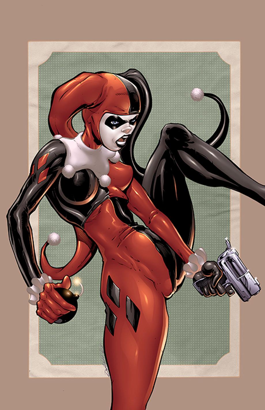Harleen Quinzel, the Arkham psychiatrist who fell in love with the Joker. A "mad love" would lead her to a life of crime as Harley Quinn, frequent accomplice, and would-be-girlfriend of the Clown Prince of Crime. In The New 52, she is a member of the Suicide Squad.