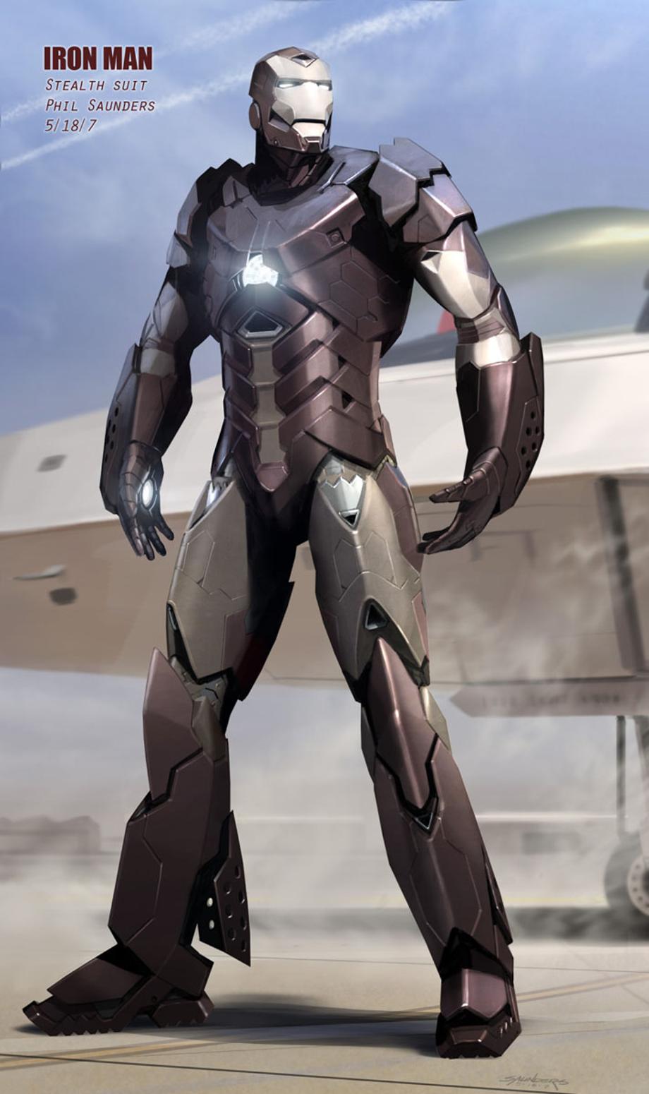 During the production of the first Iron Man film, concept art by Phil Saunders had this design for a Stealth Suit which looks great. I still think a few point can be improved mostly the head area and colors are too close too War Machine but the general design, especially the legs, really does look right.