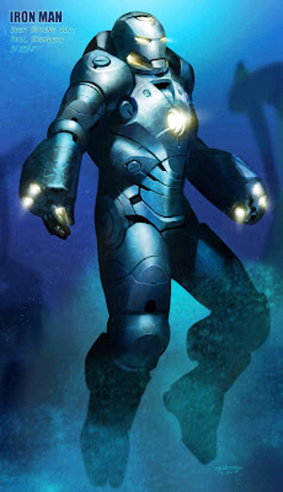 Note: During the production of the first Iron Man film, concept art by Phil Saunders had this design for an Underwater Suit, however i think Yellow is more fun.