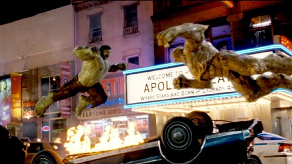 FightAsOne - The fight in The Incredible Hulk took place in Harlem, New York. Since according to reports and what I can see of the set above they are including the former Garuman's Chinese Theater in the shots, this will be taking place in Hollywood, not New York.