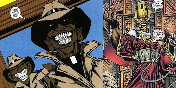 "Gentleman, I'll be seeing you very soon," he says before donning his purple mask from the comic books.