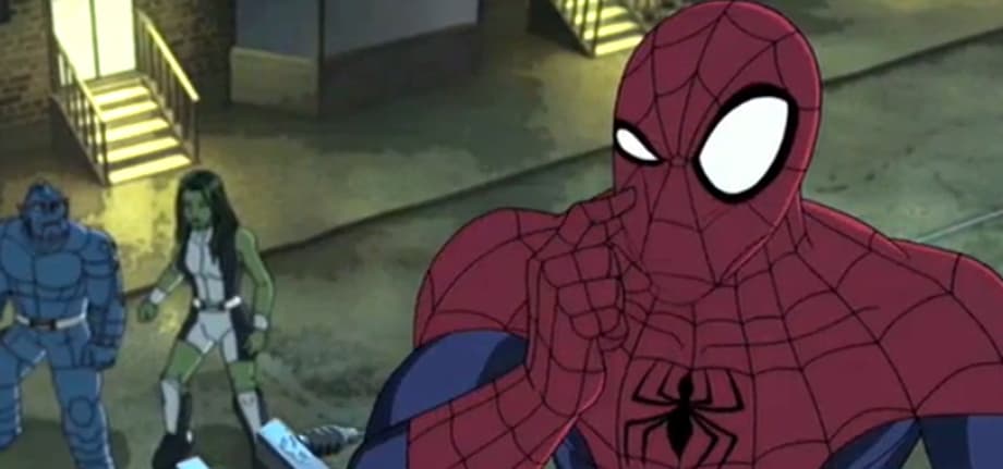 Spider-Man, Red Hulk (Clancy Brown), She-Hulk (Eliza Dushku)A-Bomb (Seth Green), Skaar (Ben Diskin), and The Hulk (Fred Tatasciore) try to stop Devil Dinosaur by pulling on his tail. When a newscopter appears it startles the beast and it frees itself from the grasp of the superheroes. Check out the clip below.