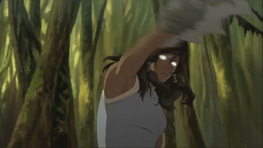 Korra Alone is a great examination of physche, and I love that through her PTSD, she can get the same sort of character study that Zuko got in the first series' excellent Book 2 episode, Zuko Alone. Whereas that ep was about running from/hiding his identity, this one is about finding hers. It should also be noted Korra's bruised eye visually evokes the scar over Zuko's in The Last Airbender.