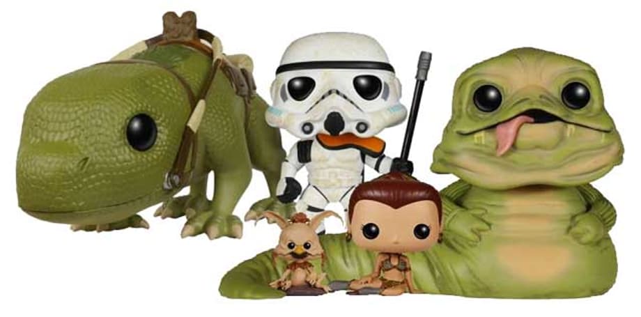 These are the Funko Pop Star Wars Vinyl Figures you've been looking for! Both are Walmart exclusives and include Jabba Hut, Slave Leia, Salacious B. Crumb, a Sandtrooper and Dewback. |