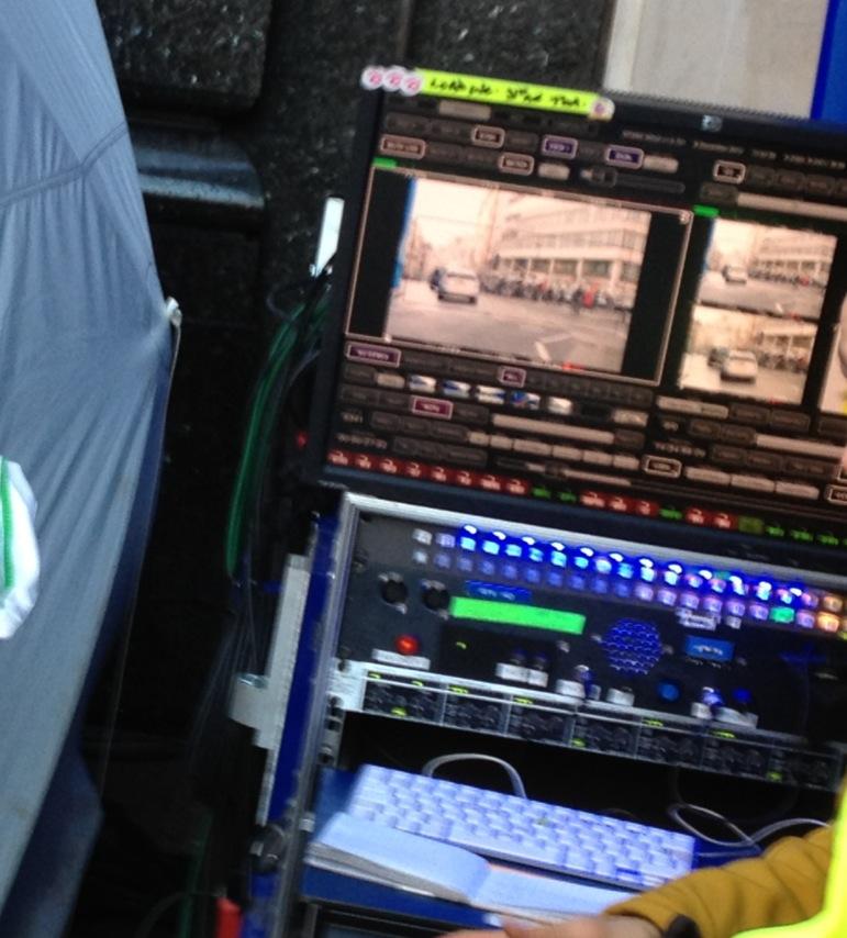 None of the principal cast was on set for filming today, but there were plenty of extras as they were seen running through the street of London in a panic. Parts of the streets were covered in a blue tarp for visual effects purposes.