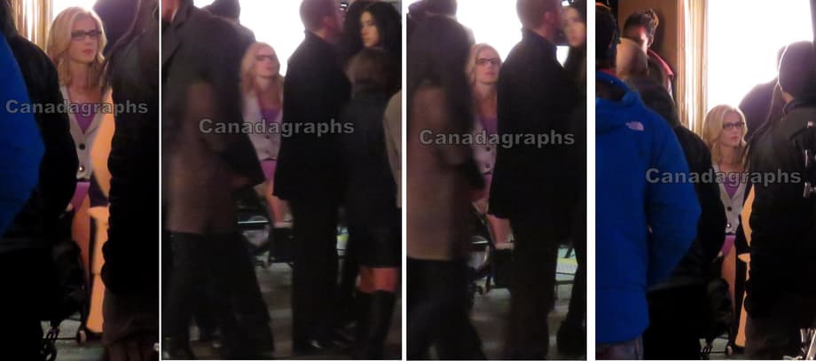 As new episodes of CW's Arrow shoot in downtown Vancouver, a couple of images from the set have found their way online. One features Katie Cassidy in her Black Canary duds, and the other... well, you'll have to click on to find out, but beware of MAJOR SPOILERS if you do...