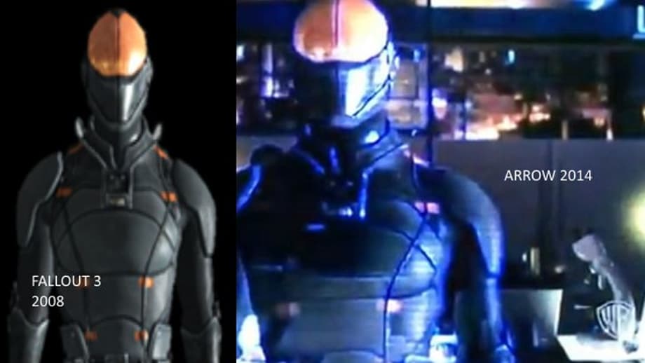 Fans of the video game Fallout 3 thought the A.T.O.M. outfit from yesterday's Arrow promo looked very familiar, and they were right. The international TV ad for Wednesday's mid-season finale clearly showed Felicity Smoak (Emily Bett Rickards) and Ray Palmer (Brandon Routh) gesturing towards whatever was going to help the latter "protect the people" of Star City, but what was then shown on screen was not the superhero costume Palmer will eventually don. The guys at Quiver Podcast reached out to Arrow concept illustrator Andy Poon, who confirmed the image was faked, and that the real suit “looks nothing like that.” He wouldn't say whether we'd get a look at the actual A.T.O.M. costume tomorrow night when “The Climb” airs on The CW at 8/7c, but I'd say it's a good bet given what we saw from the promo.