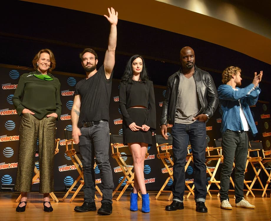 As you can see in the video and photos below, Finn Jones (Iron Fist) was joined on stage by Charlie Cox (Daredevil), Krysten Ritter (Jessica Jones), and Mike Colter (Luke Cage) before Sigourney Weaver was also brought out (details on her role in The Defenders can be found by clicking here). It could be a while before we hear more about this one, so be sure to stay tuned to CBM for further updates.