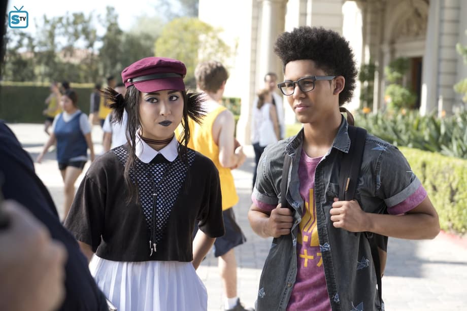 After the events of today's episode, which featured a fun Stan Lee cameo, Alex (Rhenzy Feliz) & Nico (Lyrica Okano) securing some evidence that could put their parents away for life, and a couple major revelations for Karolina (Virginia Gardner), next week's hour will continue to up the ante as the Runaways and the Pride suddenly find themselves in close proximity to one another at Atlas' open house.