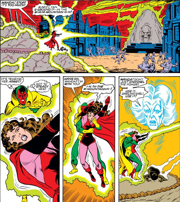 @rabid - The page pictured above where Wanda uses the magic to grant her pregnancy is set in New Salem (home to Harkness and Scratch) so the series could be drawing from it, FF, or any combination thereof I suppose... and that’s why I’m ultimately at a loss for which storylines they might be pursuing. So much of what we’ve heard could fit many different comic inspirations.